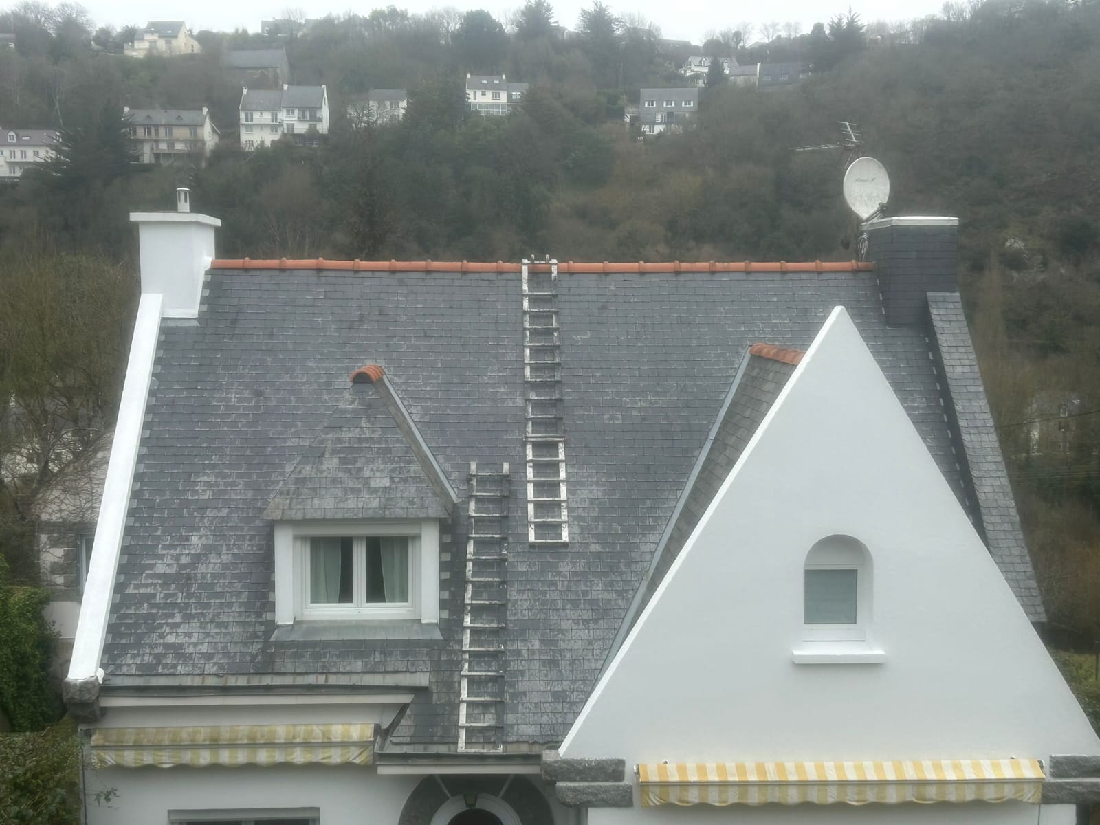 La toiture est l’un des éléments les plus visibles et les plus exposés de votre maison. Nous assurons un nettoyage complet pour éliminer les mousses, lichens et traces noires, suivi d’une peinture hydrofuge adaptée au matériau de votre couverture. Votre toit retrouve un aspect propre et uniforme, tout en gagnant en longévité.